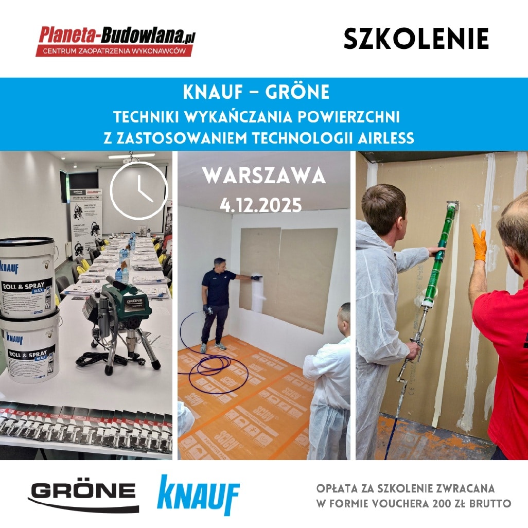 | TRENERZY | Artur Makowski – doradca techniczno-handlowy KNAUF Polska Tomasz Jóźwiak – główny specjalista działu szkoleń Planeta Budowlana Daniel Wodnicki – technik-szkoleniowiec firmy GRONE Przemysław Woldan – doradca techniczno-handlowy Planeta Budowlana |