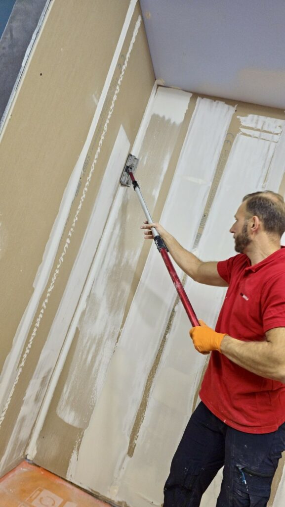 Oznaczenia Q1, Q2, Q3 i Q4 pochodzą z niemieckich wytycznych dotyczących wykończenia płyt kartonowo gipsowych. W praktyce przyjęły się również w Polsce i dziś są powszechnie stosowane — szczególnie przy odbiorach gładzi — jako standard, czytelny punkt odniesienia dla inwestora i wykonawcy. Szpachlowanie Q1– techniczne minimum Szpachlowanie w standardzie Q1 obejmuje:- wypełnienie spoin między płytami GK,