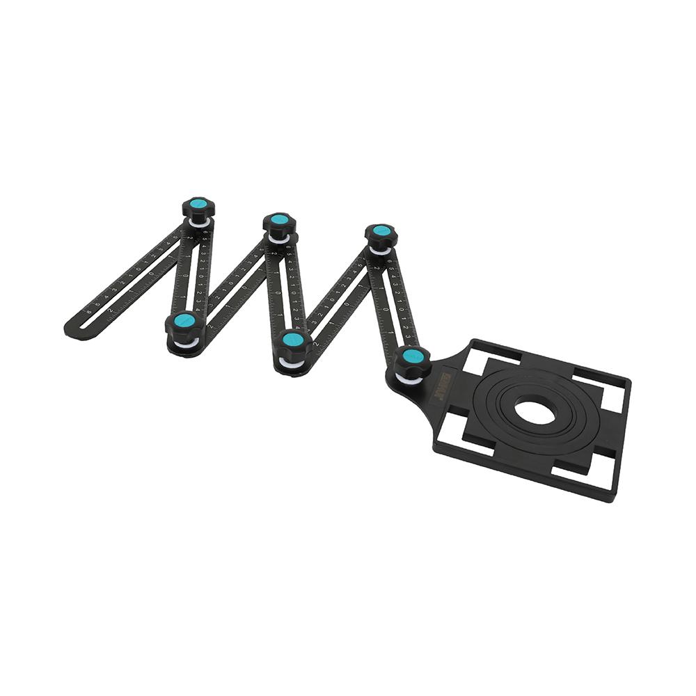 Wzornik otworów, kształtów i prowadnica do cięcia. Wielofunkcyjny, regulowany lokalizator otworów do wiercenia w płytkach. Posiada regulowane aluminiowe prowadnice do mapowania cięć i kątów. Wzornik jest kompaktowy i lekki. Wysokiej jakości mocowania zapewniające długotrwałe użytkowanie.