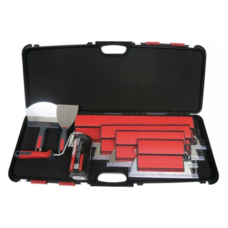 - Łatwość w użyciu – Każdy element zestawu został zaprojektowany tak, aby prace wykończeniowe były szybkie i efektywne, idealne do gładzenia zarówno małych, jak i dużych powierzchni.