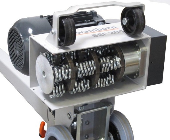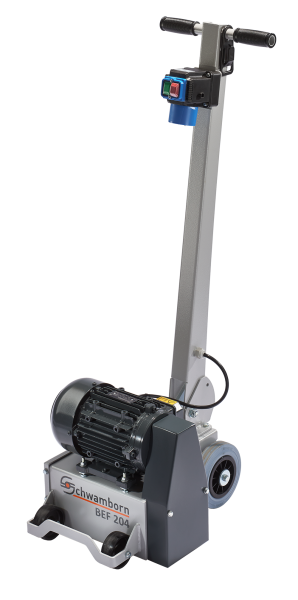 BEF 204 to lekka frezarka do jastrychu ze zintegrowanym frezem krawędziowym do usuwania nierówności posadzki, występów, frezowania powłok aż do 10 mm od krawędzi posadzki jastrychowej, wyposażona w pyłoszczelne i tym samym bezobsługowe łożysko wirnika.