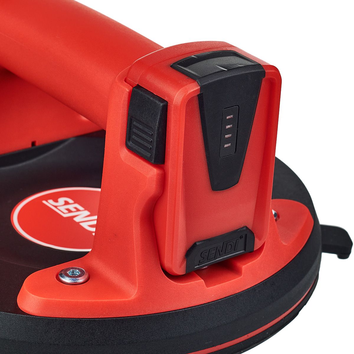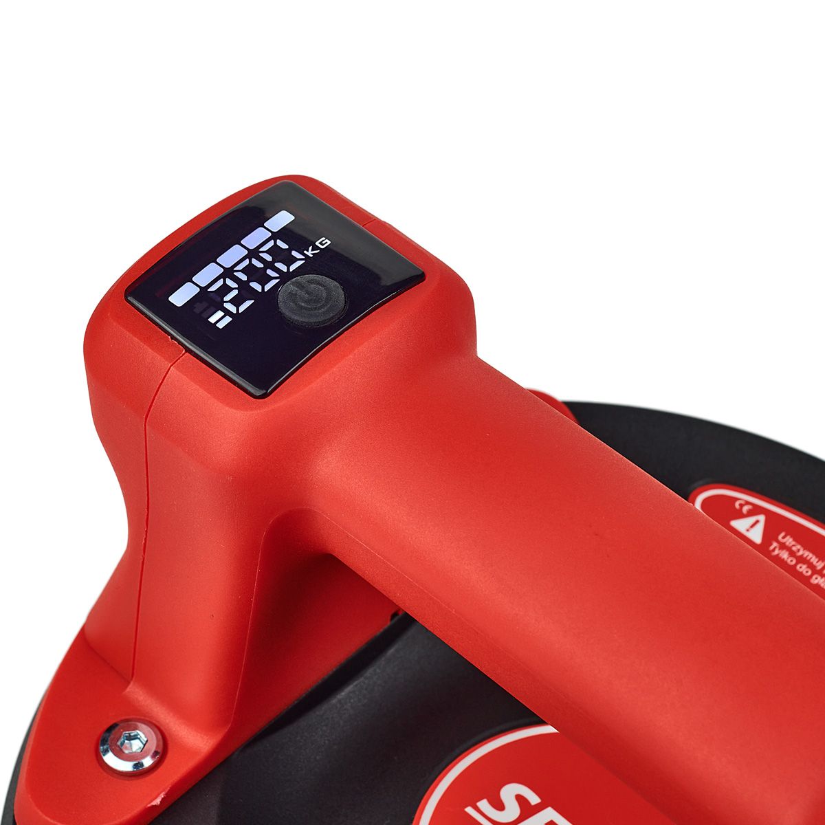 Przyssawka próżniowa przeznaczona do bezpiecznego podnoszenia przedmiotów o suchej i gładkiej powierzchni, takich jak płytki ceramiczne, gres czy szkło. Wyposażona w automatyczny system pompowania, który samoczynnie uruchamia i zatrzymuje generowanie podciśnienia – bez potrzeby ręcznej obsługi. Cyfrowy wyświetlacz umożliwia kontrolę aktualnego poziomu podciśnienia oraz stanu baterii. Ergonomiczna konstrukcja w połączeniu z intuicyjną obsługą zapewnia wygodę i bezpieczeństwo podczas pracy. W zestawie znajdują się dwie baterie z diodowymi wskaźnikami naładowania oraz ładowarka, co umożliwia wydłużoną pracę bez potrzeby częstego ładowania.