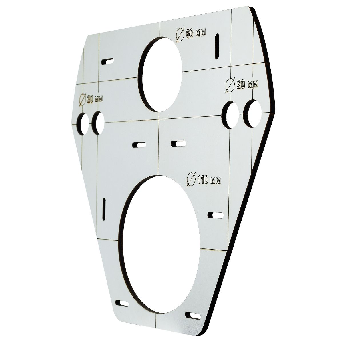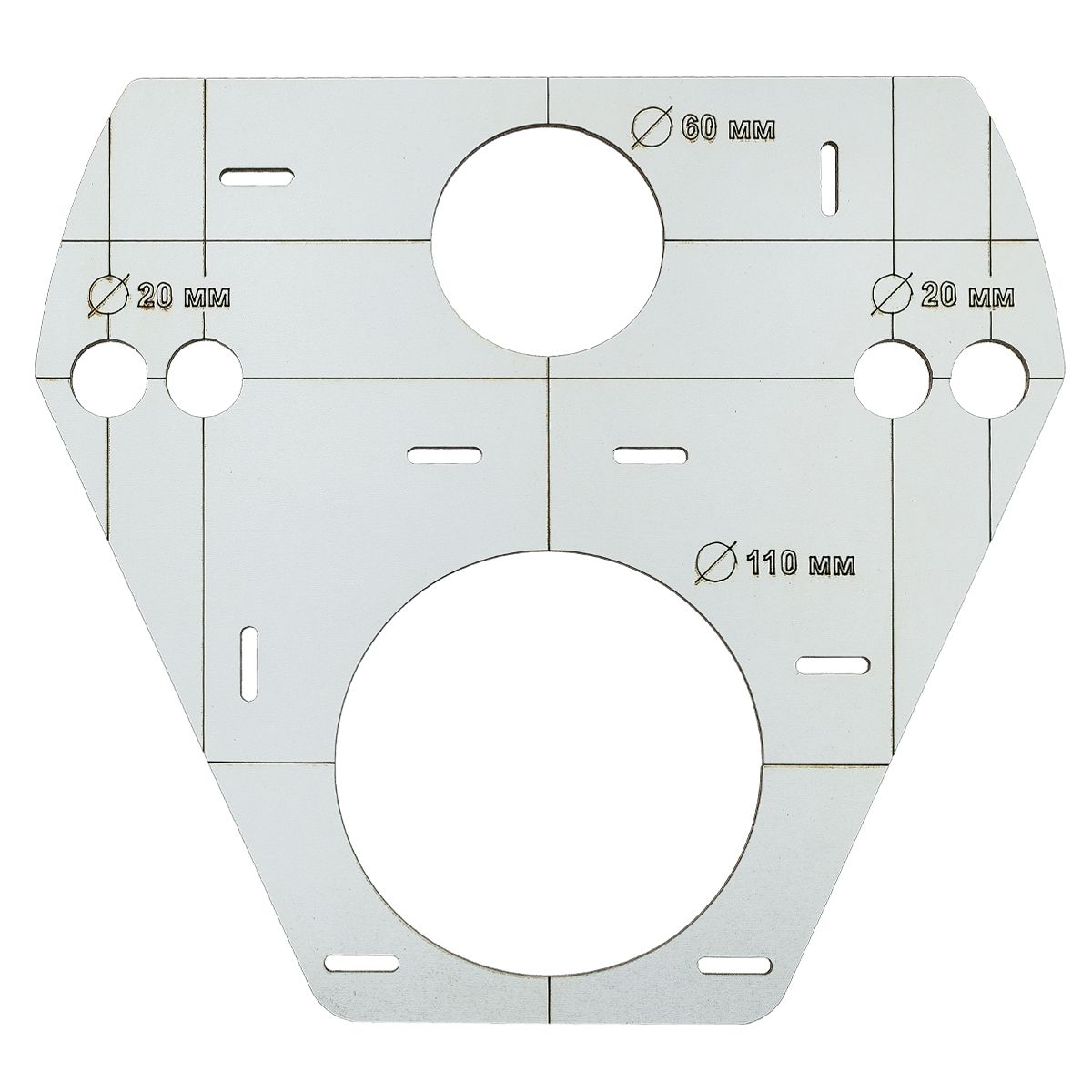 Szablon do oznaczania i wiercenia otworów w płytkach ceramicznych, idealny do montażu WC oraz innych elementów wyposażenia łazienki. Przymiar do otworów pod stelaż podtynkowy.