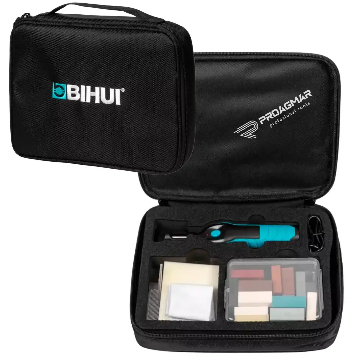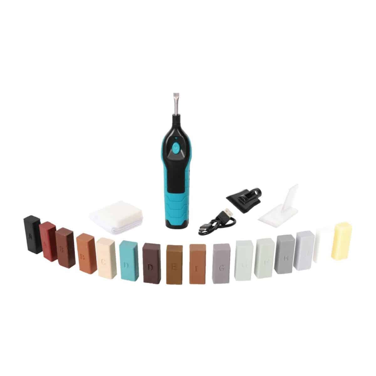 Akumulatorowy zestaw naprawczy BIHUI TRPK idealnie sprawdzi się przy naprawie uszkodzonych lub pękniętych płytek, kamienia czy paneli. Twardy wosk w 16 kolorach zapewnia możliwość dokładnego dopasowania odcienia do naprawianej powierzchni.