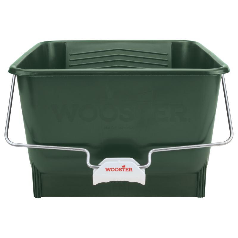 Wiadro 4 galonowe (ponad 15 litrów) Profesjonalne wiadro malarskie Wooster z wygodną do noszenia rączką. Wykonane z polipropylenu zapewnia odpornść na pęknięcia oraz wytrzymałość na agresywne rozpuszczalniki. Wiadro ma wbudowaną kratkę do ściągania nadmiaru farby z wałka, co nieweluje problem z wkładaniem/spadaniem kratki do wiadra oraz zasychaniu na niej farby.